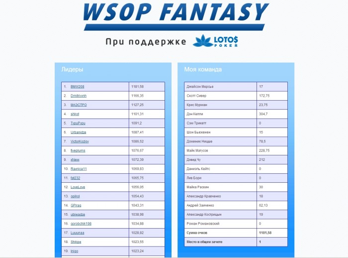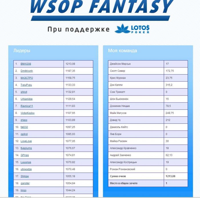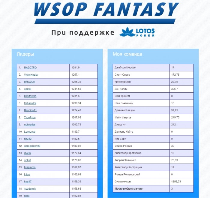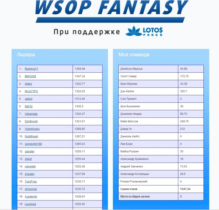 К сожалению Кострицын покинул турнир на 14 месте(((( Но остается Матусов)))