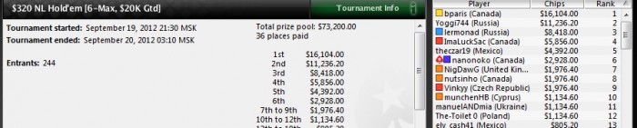 Только что вылетел из недорогого сайда ЕПТ 300+100 ко, на 2 месте. В хедсапе 77 < Q2o за победу, обидно, очень хотелось получить трофейчик, но хотя бы отбил баины за серию)