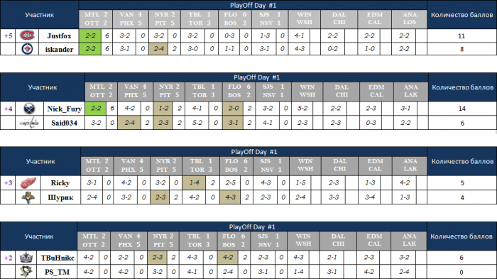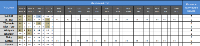 Не забываем присылать прогнозы. Пока есть только мои и Джаста. Тут уже резервных туров не будет. Пропустите тур и ваш оппонент поведет в серии, не давайте ему такого подарка