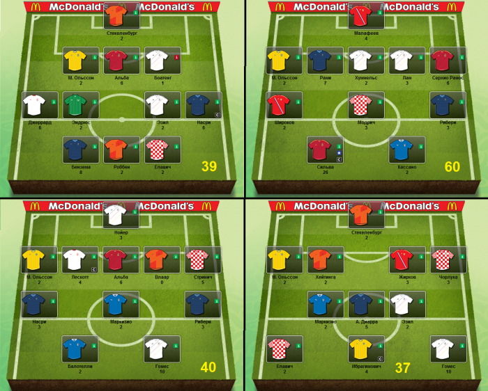 блин сегодня крайне дисперсионный день, если франция с украиной на ноль сыграют , а англия пропустит и джерард забьёт, то есть шанс вообще по россии выйти на 1 место, т.к. у всех поголовно там лескот , рибери и 2 украинца : коноплянка и ярмоленко ... в любом случае , если пролечу , то по крайней мере играл на победу и будет совсем не обидно :))))