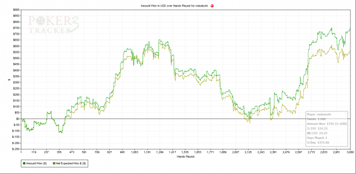 Честно говоря, на протяжении всех пяти игр у меня было открыто еще два стола 100-200, поэтому играл я на полу-авто-пилоте. 3-2 ты выиграл, значит играл хорошо