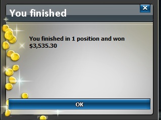на позитиве, ведь утром в субботу я занял два топ1 в турах по 5$ и 1RA, получив 305 и 750 соответственно, и еще топ3 в турбине по 15, которая принесла мне 160$ профита.