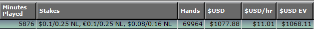 Всем привет! за 3 дня сыграл одну короткую сессию. Зато восстановился практически и провел время с любимой. Потерял "платину", но это мелочи. Результатом марта я недоволен. Недоволен: а) количеством сыгранных раздач, б) качеством игры. Я пока не понял, это я настолько плох и апстрик закончился или я в принципе играю неплохо и просто даунстрик начался. Как ни печально, на первый взгляд это первый вариант. А еще мне постоянно снится какой-то бред, не знаю к чему это. В общем результаты: