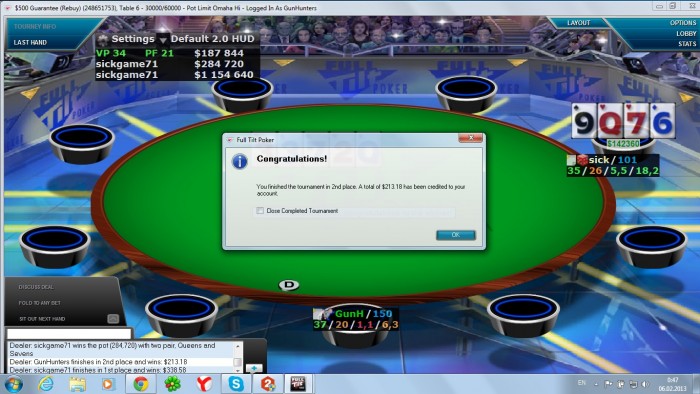 Full Tilt Poker $16,000 Rush Guar (Rebuy) No Limit Hold'em Tournament - t400/t800 Blinds + t100 - 9 players -