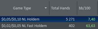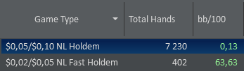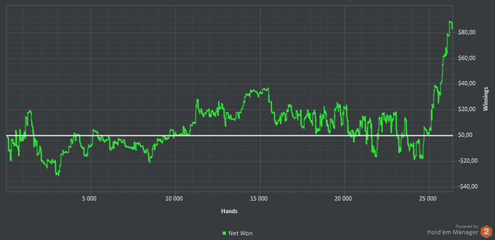 При этом выигранные раздачи у меня только у коротышей, больше 60ББ не выигрывал. В общем имели меня сегодня как хотели. Ну да ладно. Вечером продолжим, сейчас на работу.