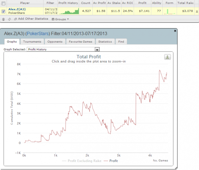 Профит сессии +233$ Общий профит +7171$ Всего турниров 4276