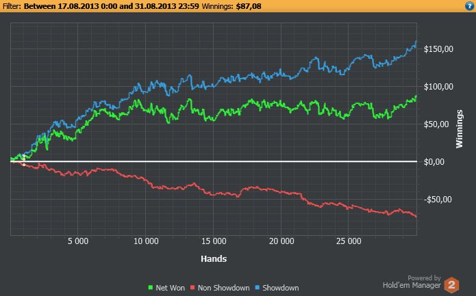 Итак, цель отыграть 30к рук за последние 2 недели выполнена(итого 40к в этом месяце). Получилось так:
