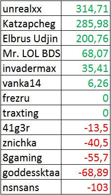 у меня там минус небольшой получается если учитывать то что это турниры с 4 числа которые закончились 5, но меня это не сильно беспокоит