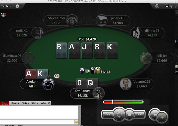 BB: 61,674 (VPIP: 35.29, PFR: 18.75, 3Bet Preflop: 0.00, Hands: 17)