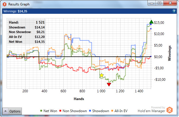 Сейчас на счету осталось всего 150$, поэтому сегодня вернулся на НЛ2, который в прошлом месяце бил. Играл привычные 4 стола СХ Но тут меня старзы встретили без радости. Объяснения излишни, все видно на графике
