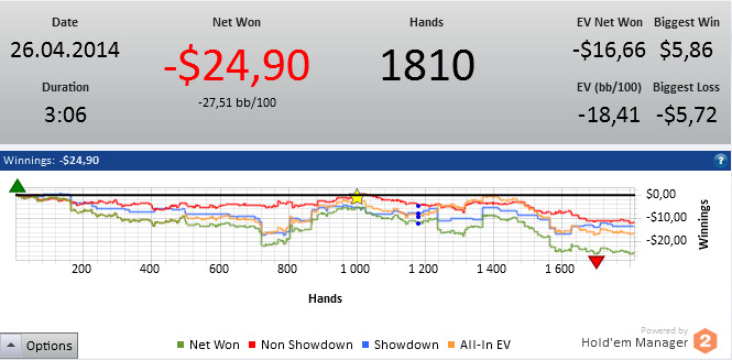 Лудоманство взяло вверх... Утренняя сессия получилась ужасная Настроя на игру не было, но я все же сел играть 8 столов. Игра шла медленно. Я начал играть все лузовее и лузовее Как итог вот: