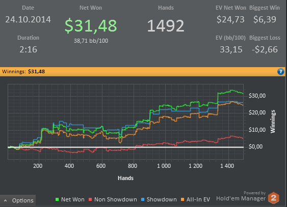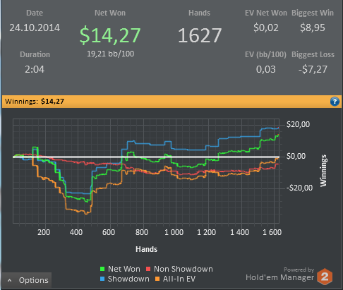 Забавно , когда справа от тебя сидит рег , катающий 24 стола , стилит каждый раз с бтн и каждый раз падает на 3бэт , потому что не успевает видимо следить. Вывод: похуй , один хер 27бб/100. (хоть и на 2к рук)