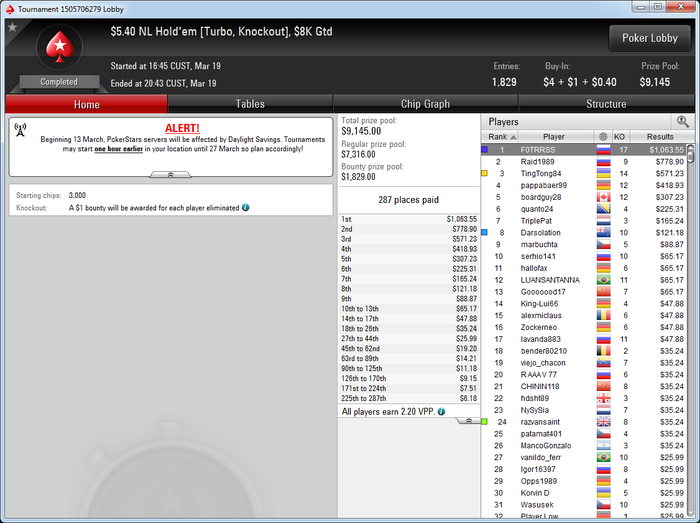 Poker Stars, $2.28 Buy-in (2,500/5,000 blinds, 500 ante) No Limit Hold'em Tournament, 3 Players Poker Tools Powered By Holdem Manager - The Ultimate Poker Software Suite.