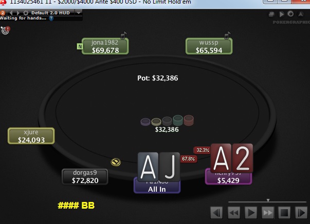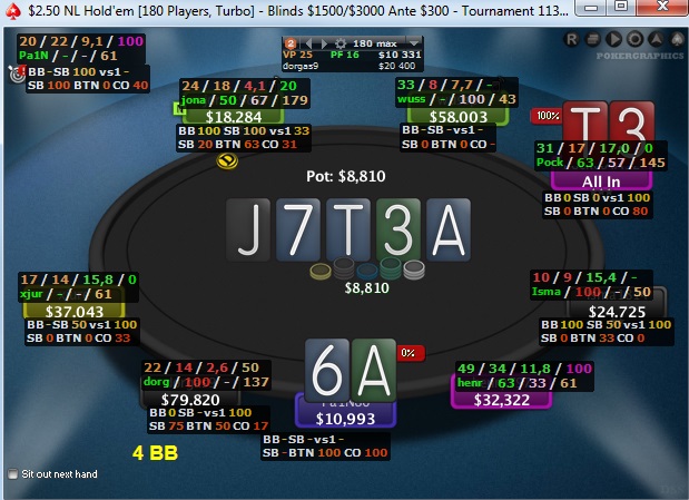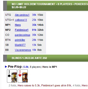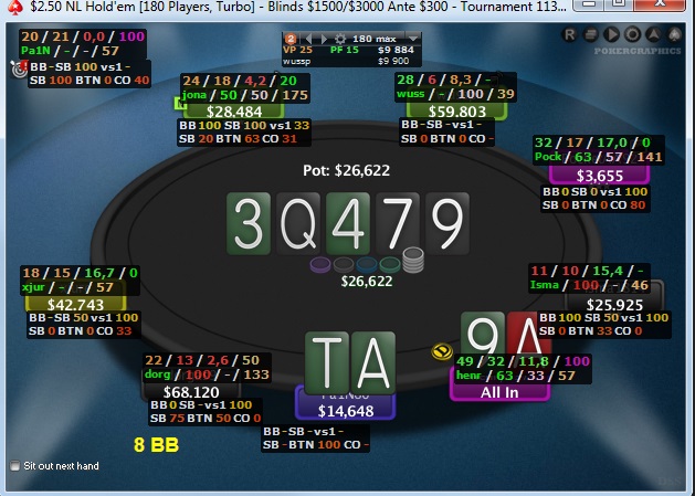 Запушил 8бб в 3их с KQ, на ББ фиш вколил по А7о ну и без иллюзий.