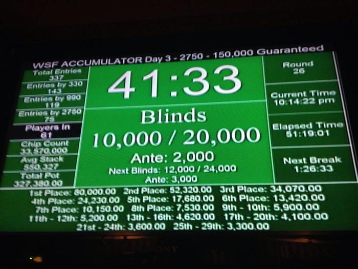 Все призах, в игре осталось 29 игроков. В связи с большим количеством оставшихся игроков и поздним временем, было принято решение финальный стол сыграть вечером, начало в 18-00.