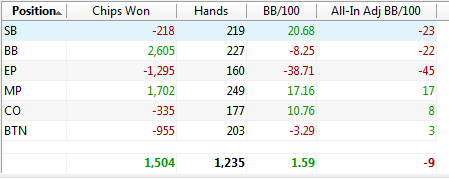Иногда лудоманькаю по чуть-чуть в мттшках или спинах или зуме холдем и омаху, тоже не особо помогает БР нарастить))) В прошлом месяце пробовал закрепиться на 1.5, в прошлом году неплохо их в плюс играл, а в этом вот так всё закончилось