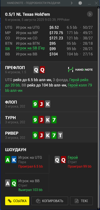 Rainpwn @ 05.08.25меня больше смущает расхождение ХМ3 и кассы, я только на днях начал замечать. Стал следить внимательнее и заметил что каждую раздачу из стека утекает микроанте что-то типа 0.02бб. Я так понимаю это в джекпот фонд, и вот за этот месяц так "утекло" уже 300 баксов, а рейкбека трекер насчитал на 215. Т.е. я согласен с рейком 8-9бб на нл100+, если бы возвращали 45%, выходил бы приемлемый эффективный рейк, но с этими дополнительными отчислениями в джекпот-фонды выглядит совсем скамно, понятно дело что часть вернется, т.к. тут даже за каре копейку платят, но все равно как-то дохуя в джекпот фонд капает, если даже рейкбеком это не покрывается...короче первые приятные впечатления прошли и сейчас уже не всё так радужно