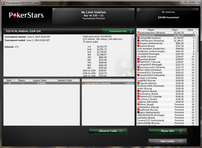 в целом я никогда не делю в 3максах где за 1ое меньше 10к, на пс достаточно плавные скачки, а там где они ужасны там дележек нет)))))), не делю по той просто причине, что когда я чипак, я всегда заряжаю по чипчоп но это обв никто никогда не хавает))) в ха же часто оч сам предлагаю делить, но почему-то в последнее время регулярно получаю отказ,это причем не смотря на то что 1ых мест у меня в 2раза больше чем вторых, и я постоянно тренеруюсь в ха кеше, ну что ж это их проблемы)))), в конкретно этом турике в ха не делелил, потому что а)уже выиграл 100+ и этот ха никак не влиял на ход сесии, так что мог себе поиграть ха б)осталось 2стола всего и сумма не существенна