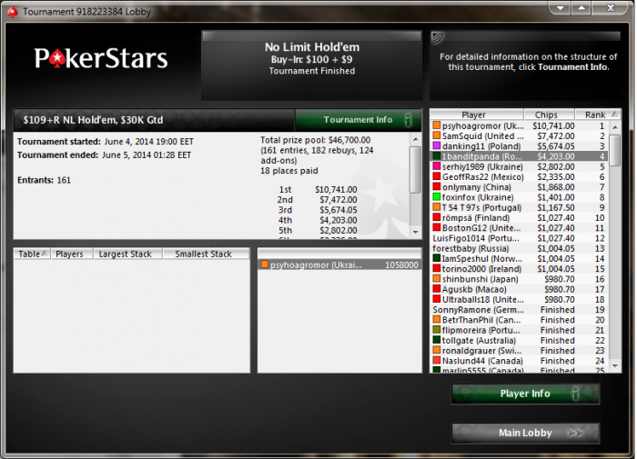 3ий в мастерсе и 4ый в сегоднешнем хр, где готыграл две отвратные раздачи прилично перемудрив себя и отправился в кассу(