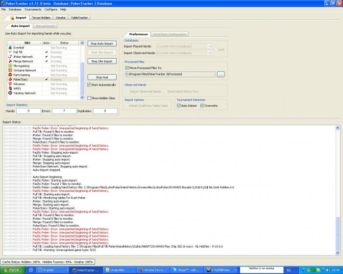 Всем доброго времени суток! Вчера на Лотосе обновился софт и ПокерТрекер перестал импортировать руки и выводить статы. Может у кого были похожие проблемы? Поделитесь решением, пожалуйста. P.S. также не выводятся статы на фуллтилте, с момента их возвращения (причина - нижние строки на скрине)