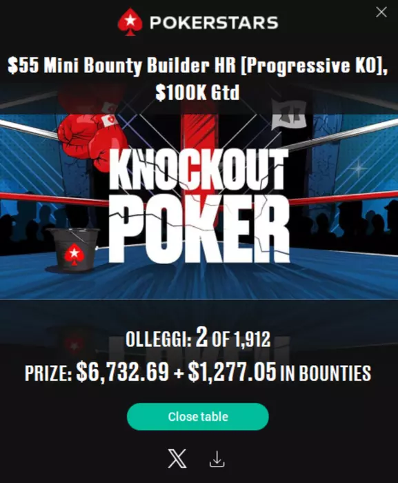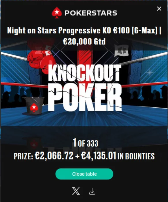 🥇 Еще один элитовец Влад Vlad успешно выступил в Night on Stars Progressive KO за €100. Победа принесла Владу €6,201, из которых €4,135 — баунти.