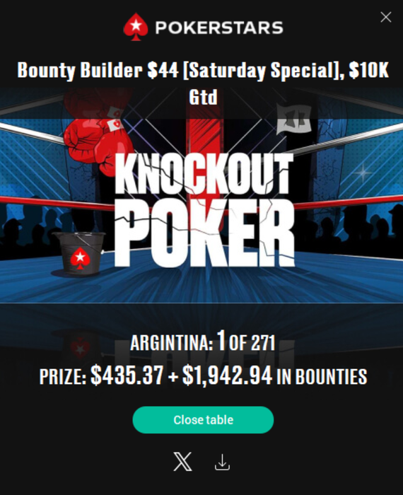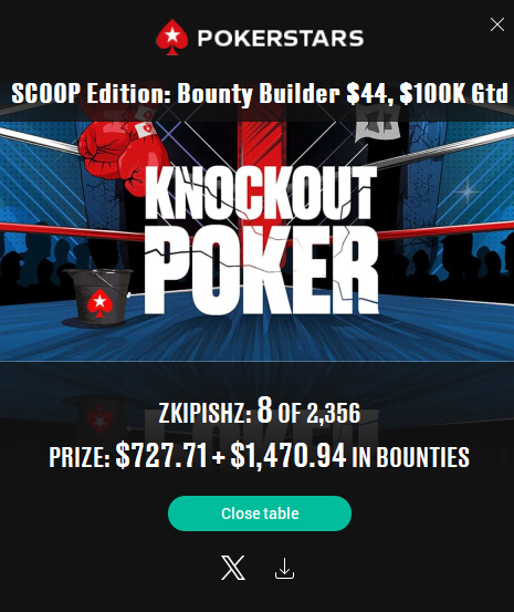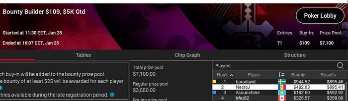 🏆 Владимир KarlM. занял первое место в Bounty Builder $44. Вместе с нокаутами сумма призовых составила $2,377.