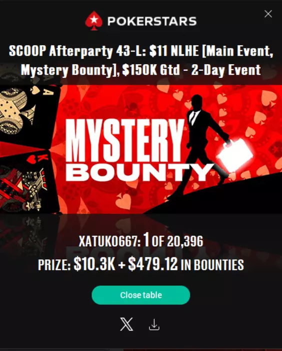 💰 Везунчиком недели становится Ержан bePro. Он вытащил баунти на $2,677 в Mystery Bounty $11. Суммарно в турнире Ержан заработал $2,884.