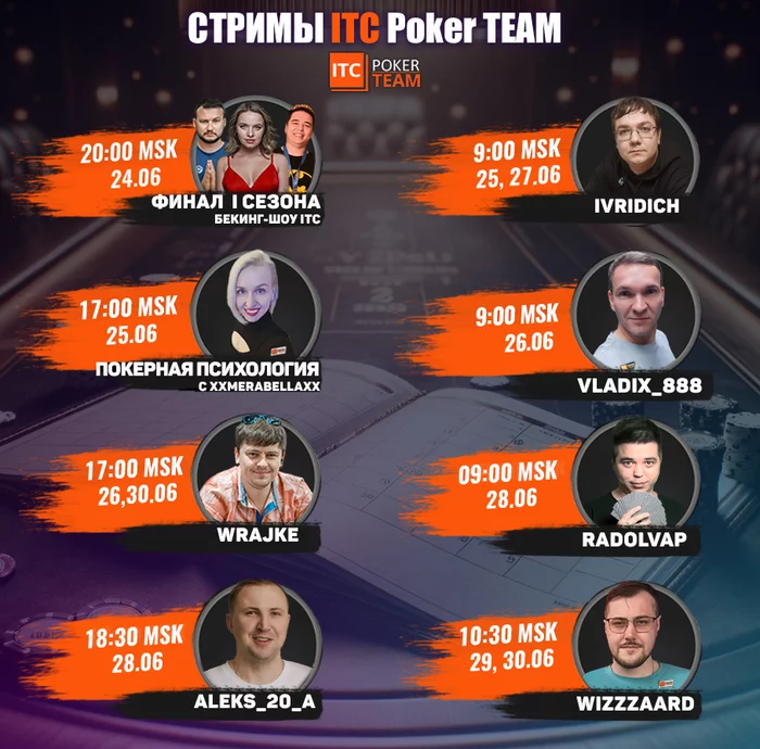 ⚡️ Расписание стримов ITCPokerTEAM