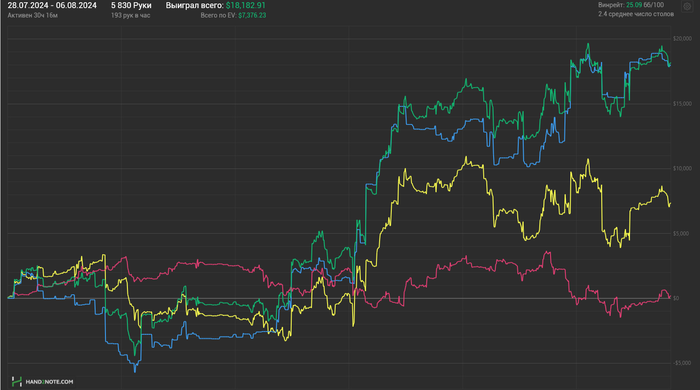 Привет не совсем понял вопроса. Это график с покеркрафта внутренний, он показывает результат до вычета рейка - точный. Тут просто условно нужно отнять 7-9бб в зависимости от стиля игры с каждой тысячи рук.
