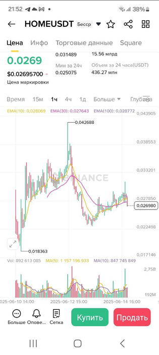 Посмотрите на график цены HOMEUSDT: