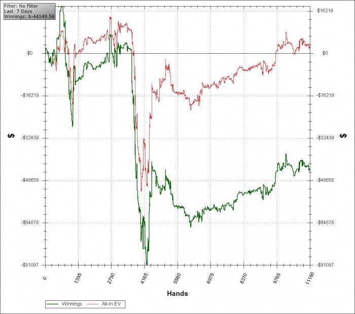 По раздаче, не понятно, что он там хочет изобразить, поэтому не думала долго. Это была одна из первых раздач за этим столом, меня туда пересадили в конце дня, там я тоже не играла долго, часа 2, поэтому по его игре ничего не помню, к тому же я не знала кто это, поэтому тоже не запомнилось.