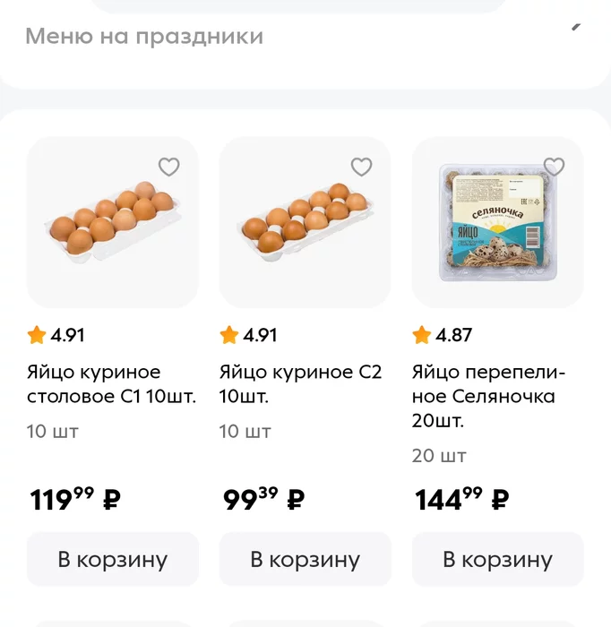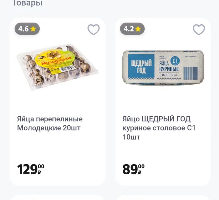 Вот две упаковки яиц 1-ой категории. Но они разного размера. Причём те, что меньше - стоят 120₽, а те, что больше - стоят 80₽. Дорогие и маленькие продают в Пятёрочке, а большие и дешёвые продают в Чижике. И добивочка: у Пятёрочки и Чижика один хозяин.