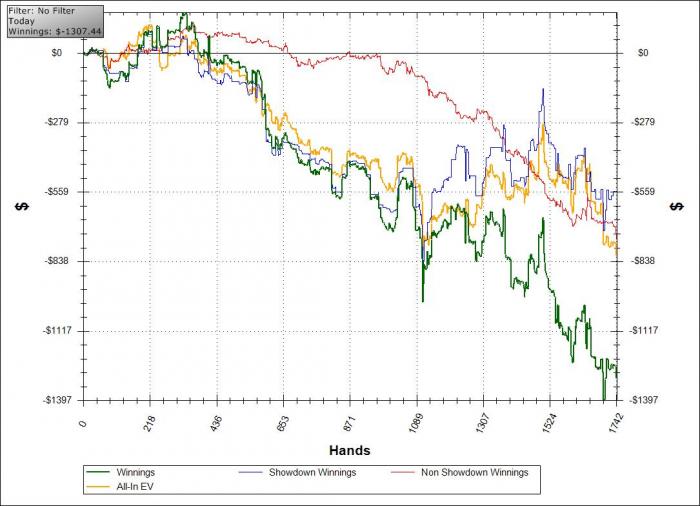 Всё-таки очень нервная работа покериста. Неслучайно по уровня стресса её сравнивают с работой авиадиспетчеров. Только что отыграл адовую сессию. В которой пережил всё от эйфории от фиша , который заливал постоянно докупаясь, до полного отчаяния когда тот же самый фиш меня просто уничтожал в каждой раздаче. Где-то в нижней точке графика я даже просто лёг на пол и пролежал около полминуты (кстати помогло лол). Сел играть на час-полтора в 23:50 , а закончил только в 5:40 и то только потому что все ушли Не спал примерно с 9 часов утра вчерашнего дня, и вместо того чтобы пойти в кровать, пишу этот пост , потому что мозг до сих в таком возбуждении, что точно не усну. И ведь закончил в нормальный плюс, а если в минус...