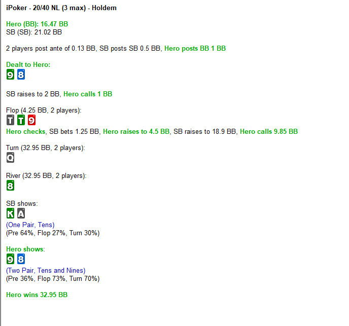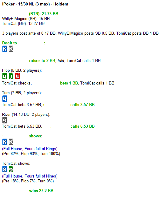 Повторяю, я не отрицаю, что я - говнарь и скорее всего 50ки не бью. Пуебло хорошо показал, что будет если играть любые составы лишь бы играть. Да там пол пула таких шизов, которые играют в 20+- фишек какие-то немыслимые дистанции.