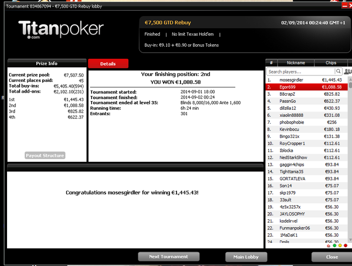 Воскресенье не очень Плюс еще 2 третьих в безгарантийном 55 на ПС и Ерли Фидди на ФТП, 5ое в мультидэе за 11 на ФТП и 9ое в 22 1р1а. По деньгам неплохо, но можно было что-нибудь затащить)