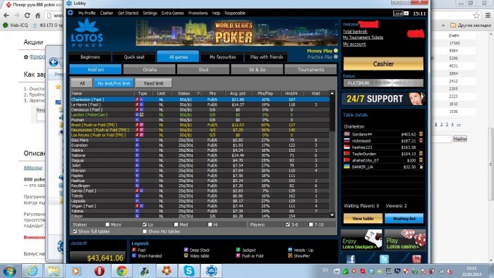 По решению сети 888 было принято решение ограничить столы NLH 10-макс & 6-макс на некотоых лимитах как минимум на месяц. В данный момент на столах могут играть только игроки LotosPoker между собой. К сожалению, нас проинформировали об этом только вчера, поэтому мы не успели сделать официального заявления на этот счёт.