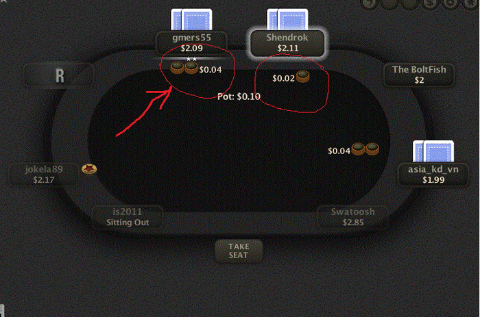 Всем привет! Подскажите, как опустить фишки у игрока, на которого стрелка показывает? Особо не напрягает, но частенько не замечаешь его ставку... Заранее спасибо!