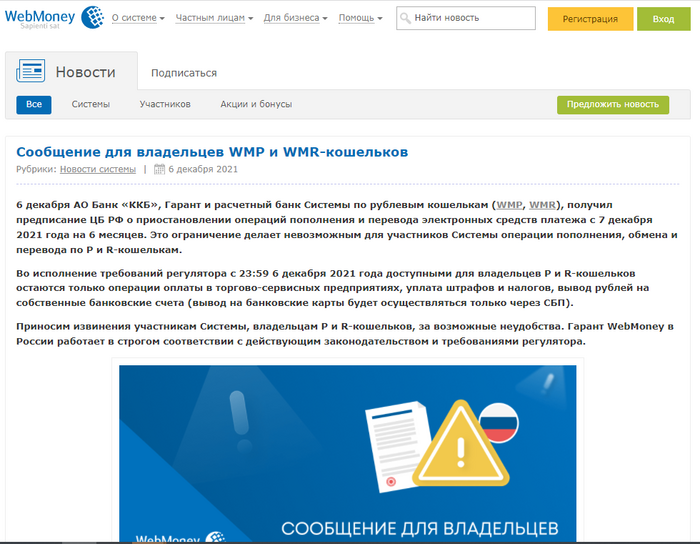 Хреновая новость по вебмани https://meduza.io/news/2021/12/06/webmoney-iz-za-predpisaniya-tsb-na-polgoda-priostanovit-vozmozhnost-popolnyat-rublevye-koshelki-i-delat-s-nih-perevody