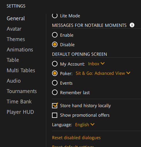 Для сохранения истории на ПК должна стоять галочка "Strore hand history locally"