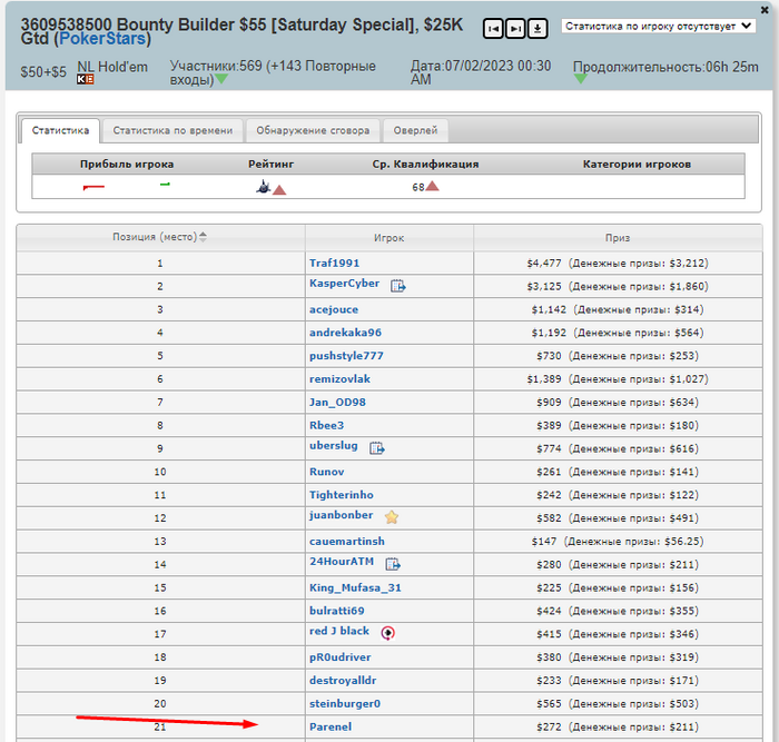 ваще никак не смог обыграть (хотя стеки были равными...) борды не мои и все тут.. Еще и клиент попросил презагрузку когда была рука для 3бет-пуша...