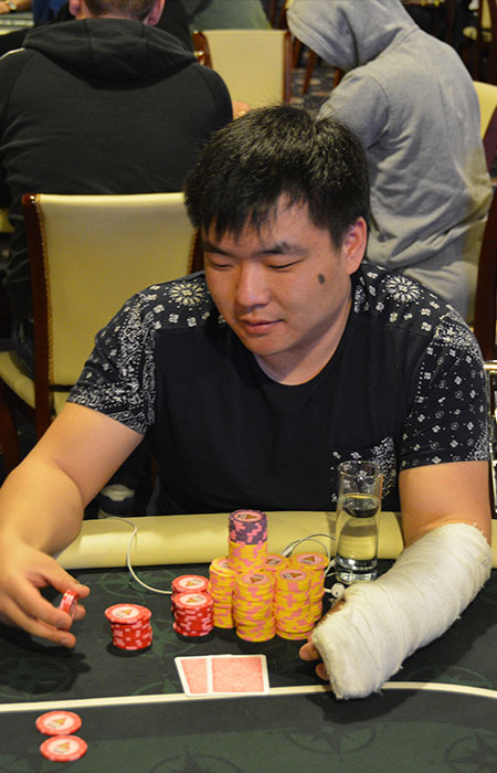 Первый олл-ин и колл. Бабич открыл из середины - 20К, Тян двинул олл-ин 205К с ББ. Саша немного посчитал, и сделал колл.