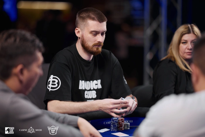 Вячеслав Кононец начинал день со стеком всего 6bb, но смог добраться до пятого места, которое принесло ему 5,660 у.е. призовых.