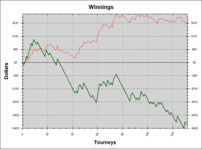 Если не лениться и играть хотя бы по 4 часа, то в день вполне можно отыграть 40-50 турниров. Считай в месяц вполне можно отыграть 1К турниров. Я же ленюсь и играю гораздо меньше. РОИ думаю вполне 8-10% можно иметь.