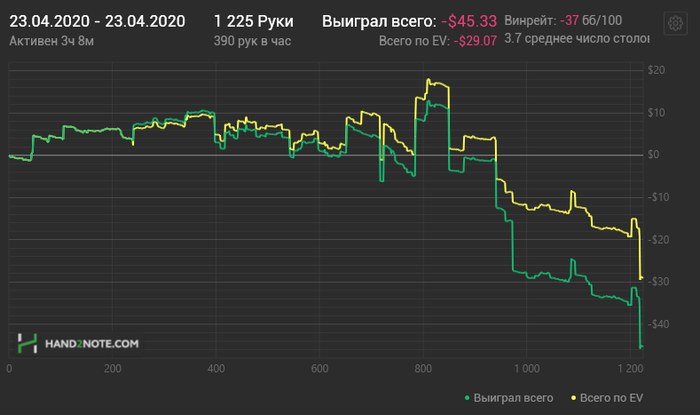 А затем началась веселуха. Ребят, я не передам эти эмоции! Это надо видеть! Особенно хедз-ап 300 vs 600bb, остальное съел рейк (кстати более 6 стеков он съел). Каждый в чате начал писать - "Надо было создавать турник, чтобы блайнды росли", "открывайтесь по 5-10бб", "поделите по icm", "хватит страдать хуйней", "что здесь происходит?", "ебать вы рейка перемоли! А чего не на плеймани" и т.д. А нам по-своему весело. Мы просто сидим приятной компанией и угараем над самими собой, в какую авантюру мы замазались.