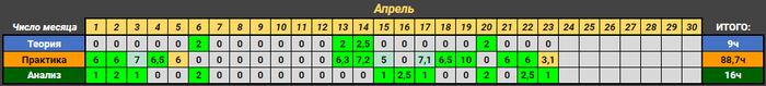 В итоге спустя минут 40 образовался следующий стол