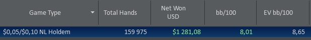 Poker Stars, $0.05/$0.10 No Limit Hold'em Cash, 8 Players
