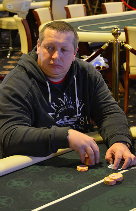 В следующей раздаче Топчий открылся с первой позиции 24К, Владимир Булгаков переставли 70К. Виткинд подумал, но в игру не вступил. Сергей же быстро выкинул и показал , Владимир перевернул лишь
