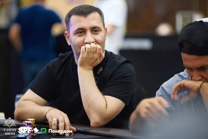 Стол 5. Действующий Чемпион России по покеру и победитель Main Event на недавнем SPF Зима Сергей Ким открылся 1,000 из UTG, Денис Михайлов 3-бетнул 3,000 с катоффа. "Страшно смотрится", — сказал Сергей и уравнял.