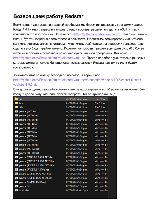 averzia, запрет и запрет-дискорд-ютуб - не скам. Ссылки по написанию ведут на реальный гитхаб этих программ(а куда они ведут в реальности я не могу проверить, т.к. это скриншот). В любом случае не обязательно переходить по ссылкам из документа, запрет-дискорд-ютуб гуглится изи.