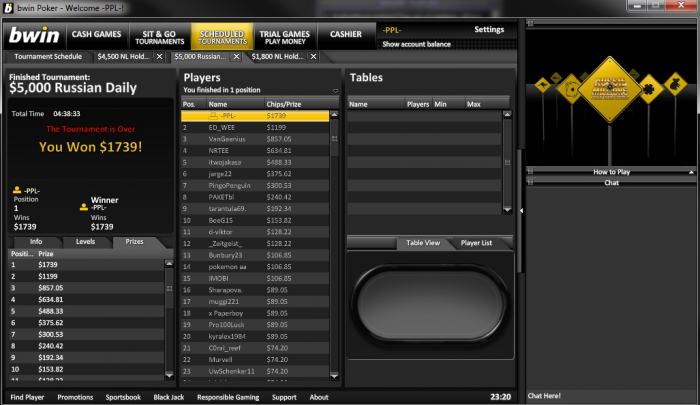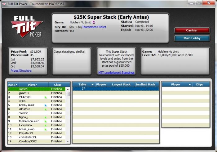 Кстати, играл этот турнир в воскресенье, оч понравилась структура. Занял 50-е место. Теперь буду стараться улучшить результат :)